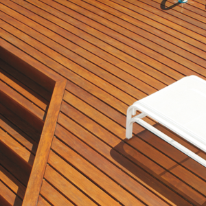 A sucupira apresenta coloração marrom-escura com pequenos veios dourados que se destacam nas peças mais lisas.